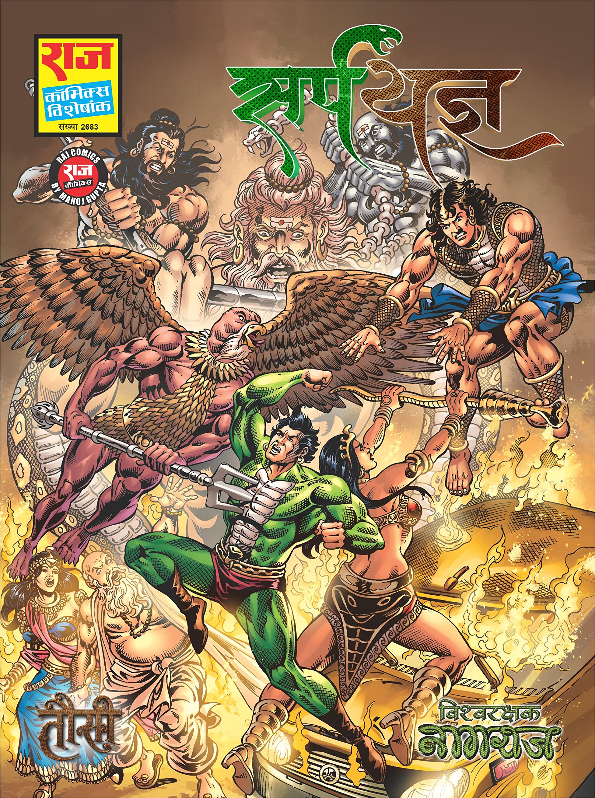 मनोज गुप्ता द्वारा राज कॉमिक्स प्रस्तुत है सर्पयज्ञ: दो सुपरहीरो, नागराज और तौसी के बीच एक महाकाव्य संघर्ष! सर्पसत्र श्रृंखला का भाग 3। अनुपम सिन्हा की महान कलम से, यहाँ एक और बेहतरीन कॉमिक बुक है जो 7 साल बाद विश्वरक्षक नागराज की वापसी को दर्शाती है! मनोज गुप्ता नागराज द्वारा संपादित और निर्मित राज कुमार गुप्ता और मनोज गुप्ता द्वारा निर्मित